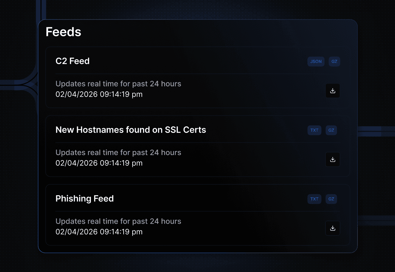 Dedicated feeds for C2, phishing, and malicious infrastructure